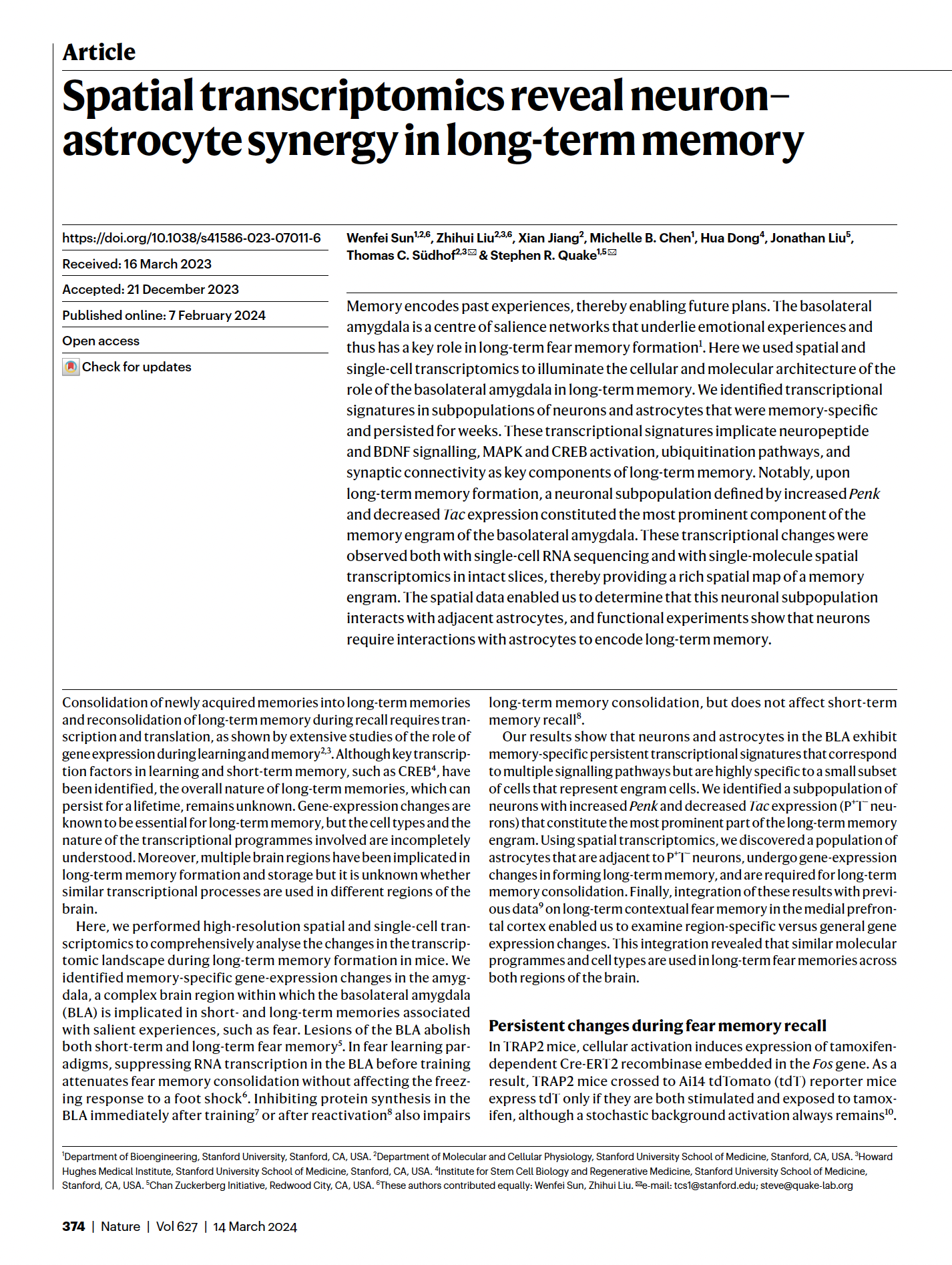 Wenfei Sun *, Zhihui Liu *, Xian Jiang, Michelle Chen, Hua Dong, Jonathan Liu, Thomas Südhof †, Stephen Quake †