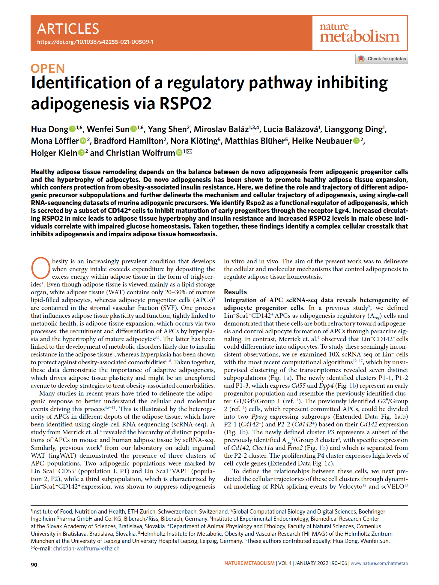 Hua Dong *, Wenfei Sun *, Yang Shen, Miroslav Baláz, Lucia Balázová, Lianggong Ding, Mona Löffler, Bradford Hamilton, Nora Klöting, Matthias Blüher, Heike Neubauer, Holger Klein, Christian Wolfrum